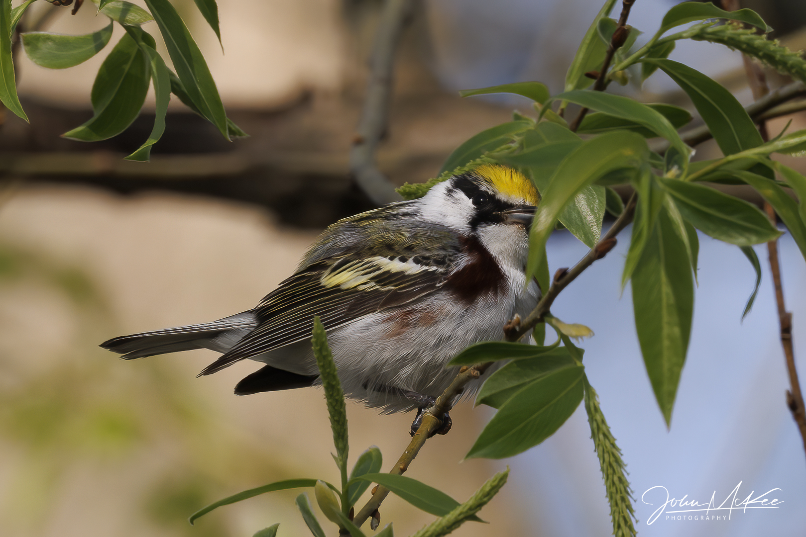 Chestnut-Sided warbler John McKee Photography: Pictures were taken on the Erieau Marsh Trail on May 12, 2023 Back to “Birds ~ Canada” Chestnut-sided warbler (song): https://event-horizon.space/wp-content/uploads/2023/12/Song-Chestnut-sided-Warbler-Setophaga-pensylvanica.mp3 Recordist: Meena Haribal
